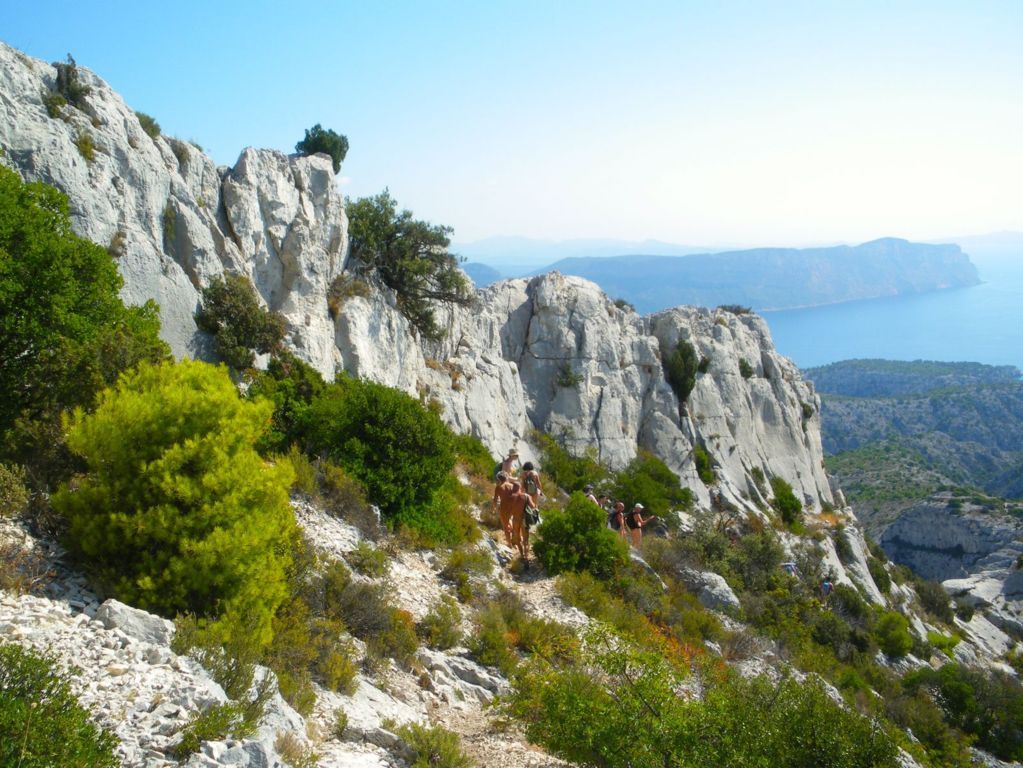 C’est l’heure de casser la croûte. Sandwichs à la main nous discutons avec d’autres randonneurs surpris mais pas choqué par notre tenue. Après la pause déjeuné il faut maintenant penser a repartir vers les voitures. Et toujours des vues extraordinaires sur le chemin du retour. Avant de nous quitter, les Marseillais nous indiquent une crique naturiste à Cassis afin de terminer la journée dans l’eau. Nous voila reparti pour 20 mn de marche.