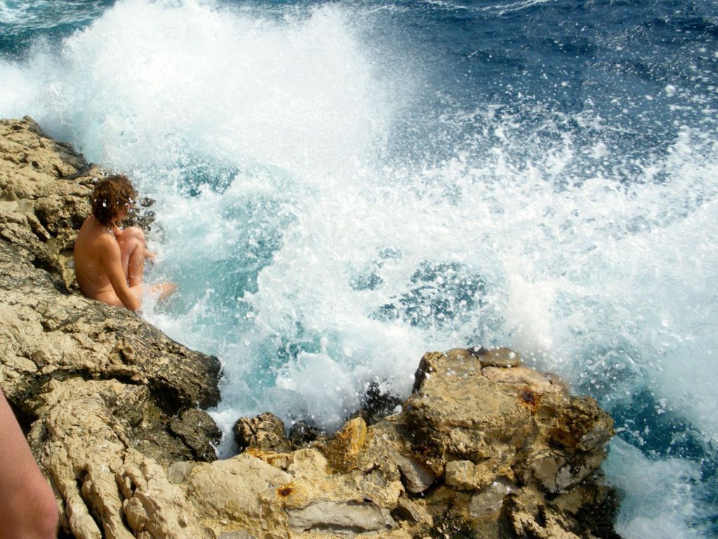 Pour les autres c’est encore le farniente qui prédomine, mais le temps change et les vagues commencent a se lever de plus en plus. Ça claque sur les rochers, soyons prudent il est préférable de rentrer. L’escalade bien négociée, nous voila donc sur le chemin du retour. Les quelques nuages nous soulage bien en cette fin de week-end. On dépose les affaires aux voitures pour aller se rafraîchir dans une petite guinguette à quelque mètres de là. Chacun reprend la route de son coté, un coup de klaxon, un signe de la main, à bientôt les amis. Un week-end bien sympa ce termine, merci à l’AJNF de nous avoir invité et merci au naturistes Phocéens de nous avoir si bien guidés.