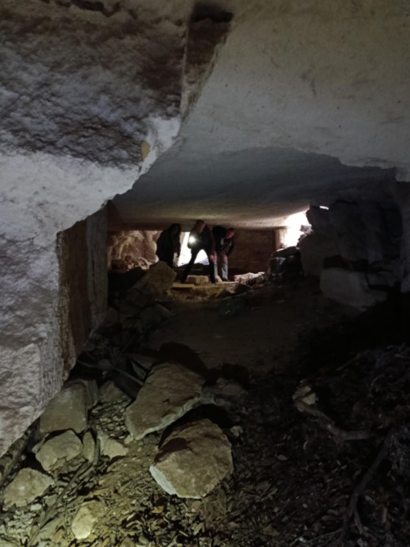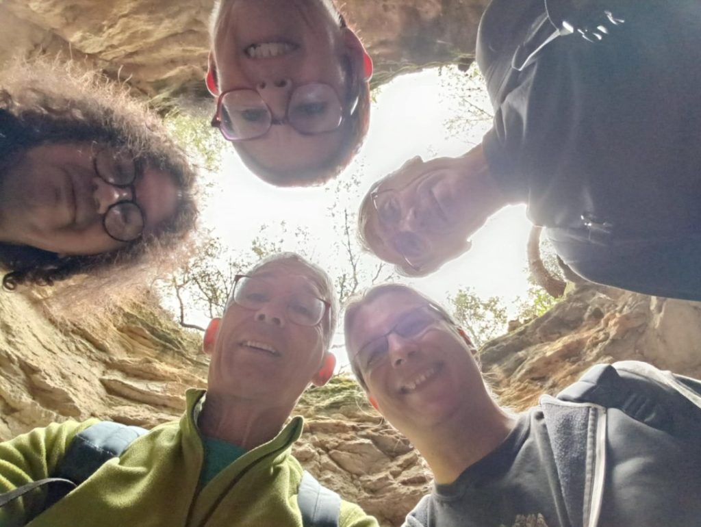 La journée s’est poursuivie dans le secteur par une rando textile sous le crachin à la recherche du spectaculaire « trou de la lune » qui ouvre sur de vastes carrieres souterraines abandonnées .