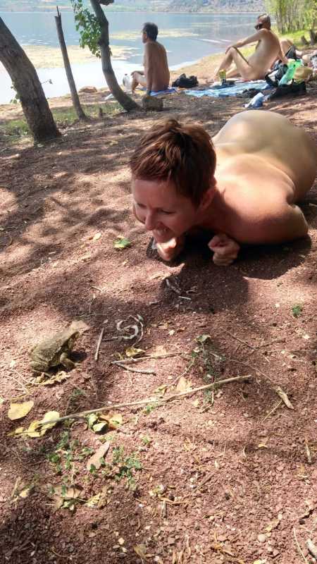 L’après midi on se pose au bord du lac pour lézarder et se baigner . Et Fabienne rencontre même un prince charmant !